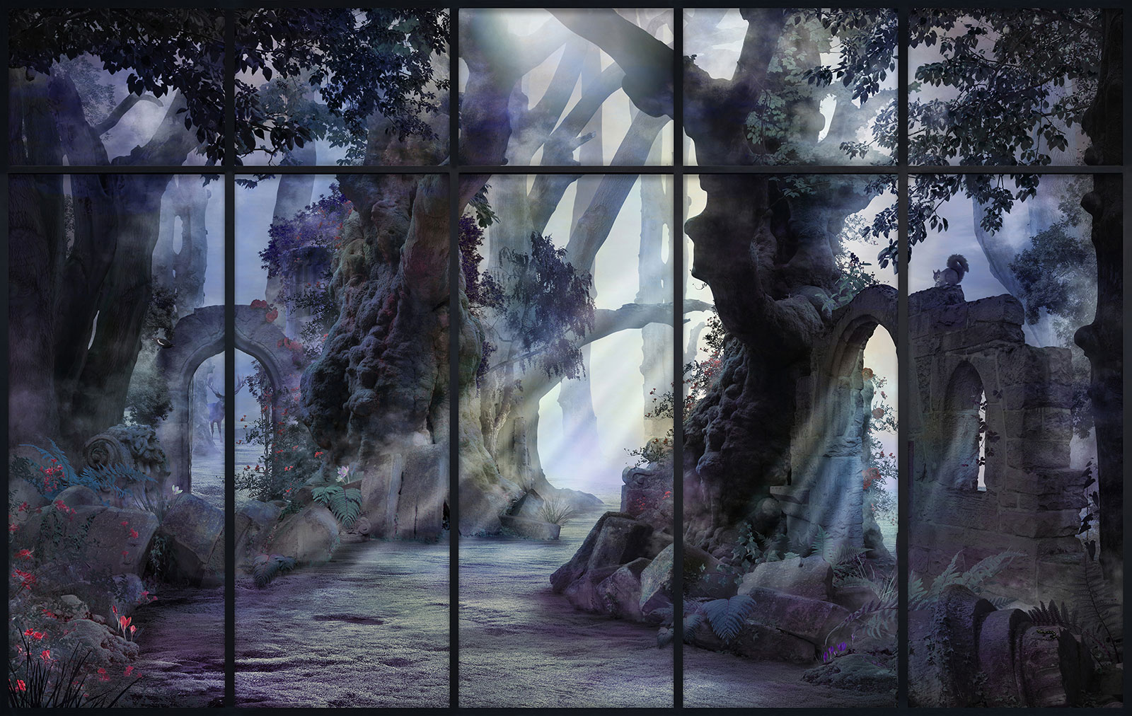Papier peint panoramique Trompe l'œil Verrière - Forêt