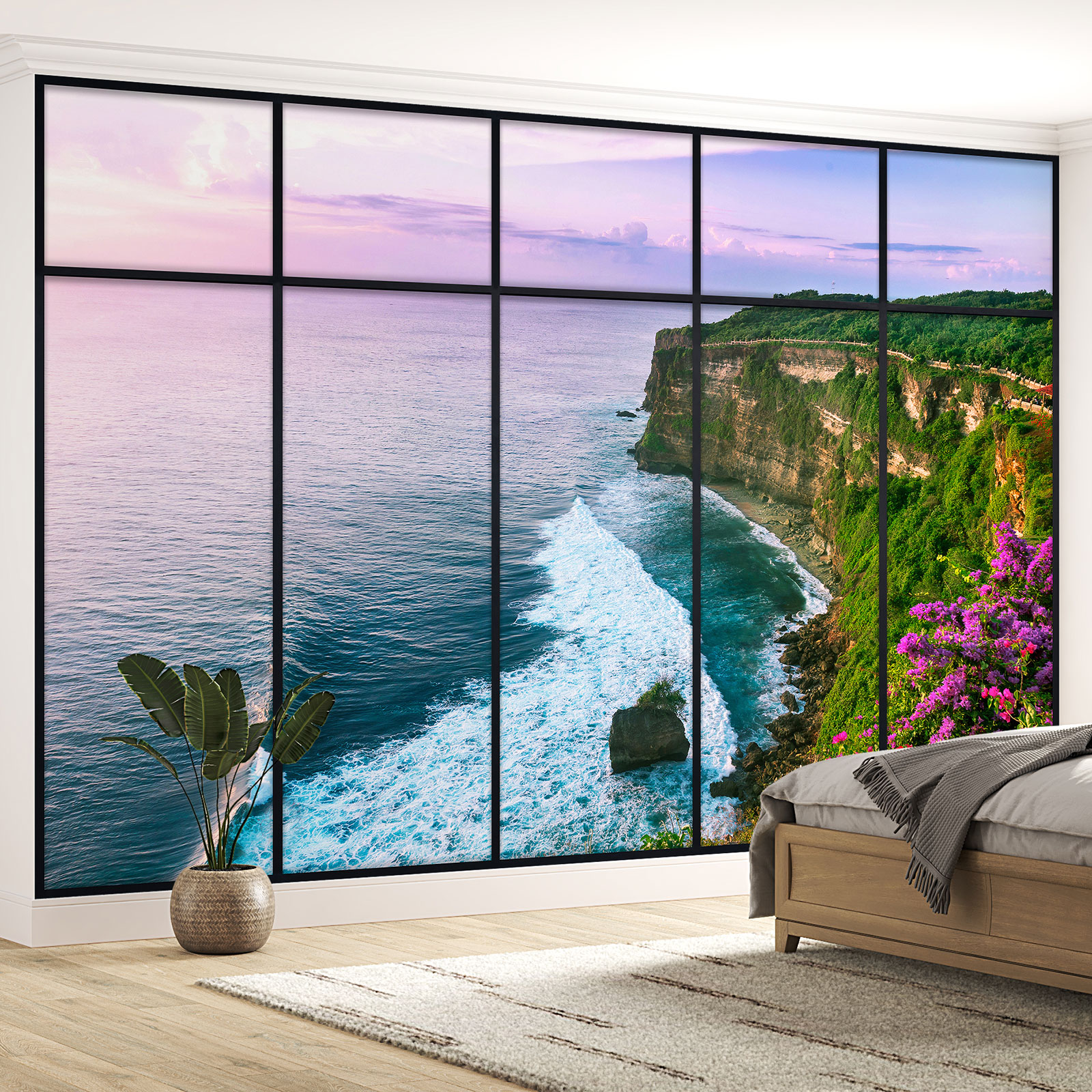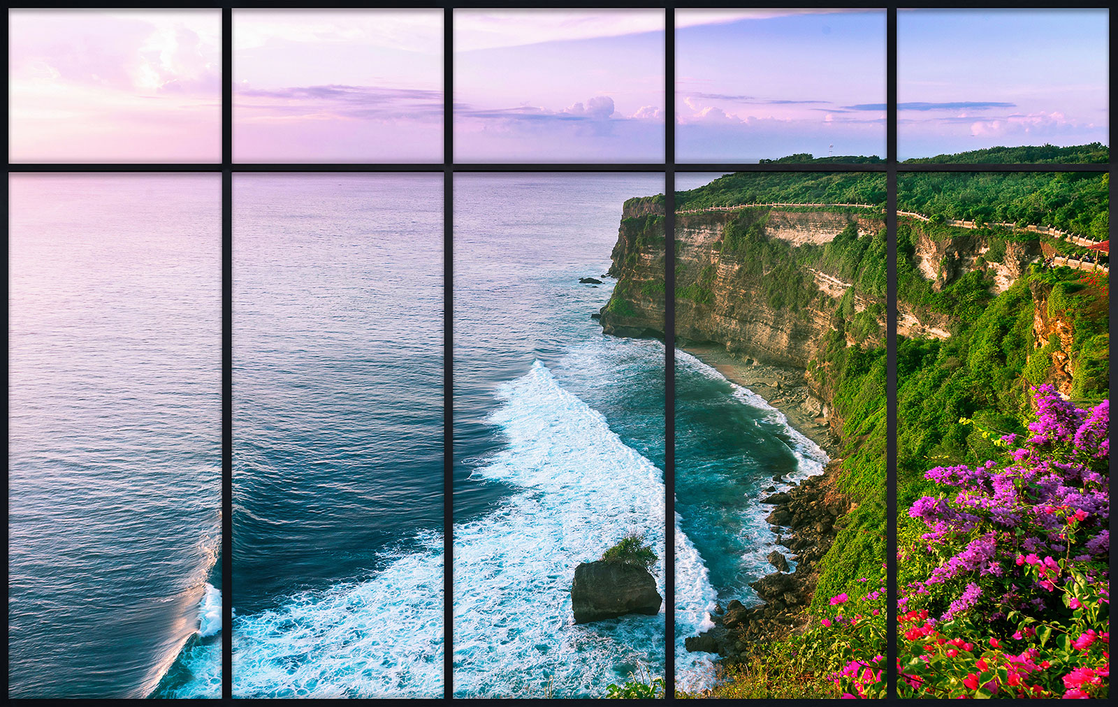 www.lumalea.fr > Papiers Peints > Papiers Peints Panoramiques > Papiers Peints Trompe L'oeil > Verrières Trompe-l'œil > Papier peint panoramique Trompe l'œil Verrière - Vue mer