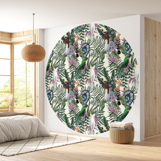 Papier peint rond / cercle - Fleurs Oiseaux - 114