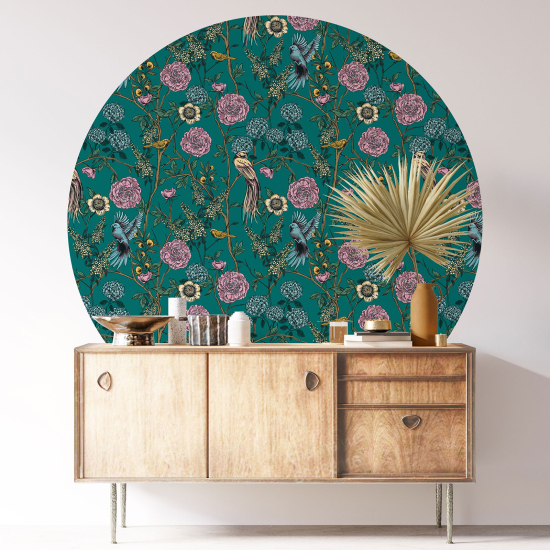 www.lumalea.fr > Papiers Peints > Papiers Peints Ronds > Ronds à Motifs > Papier peint rond / cercle - Fleurs Oiseaux