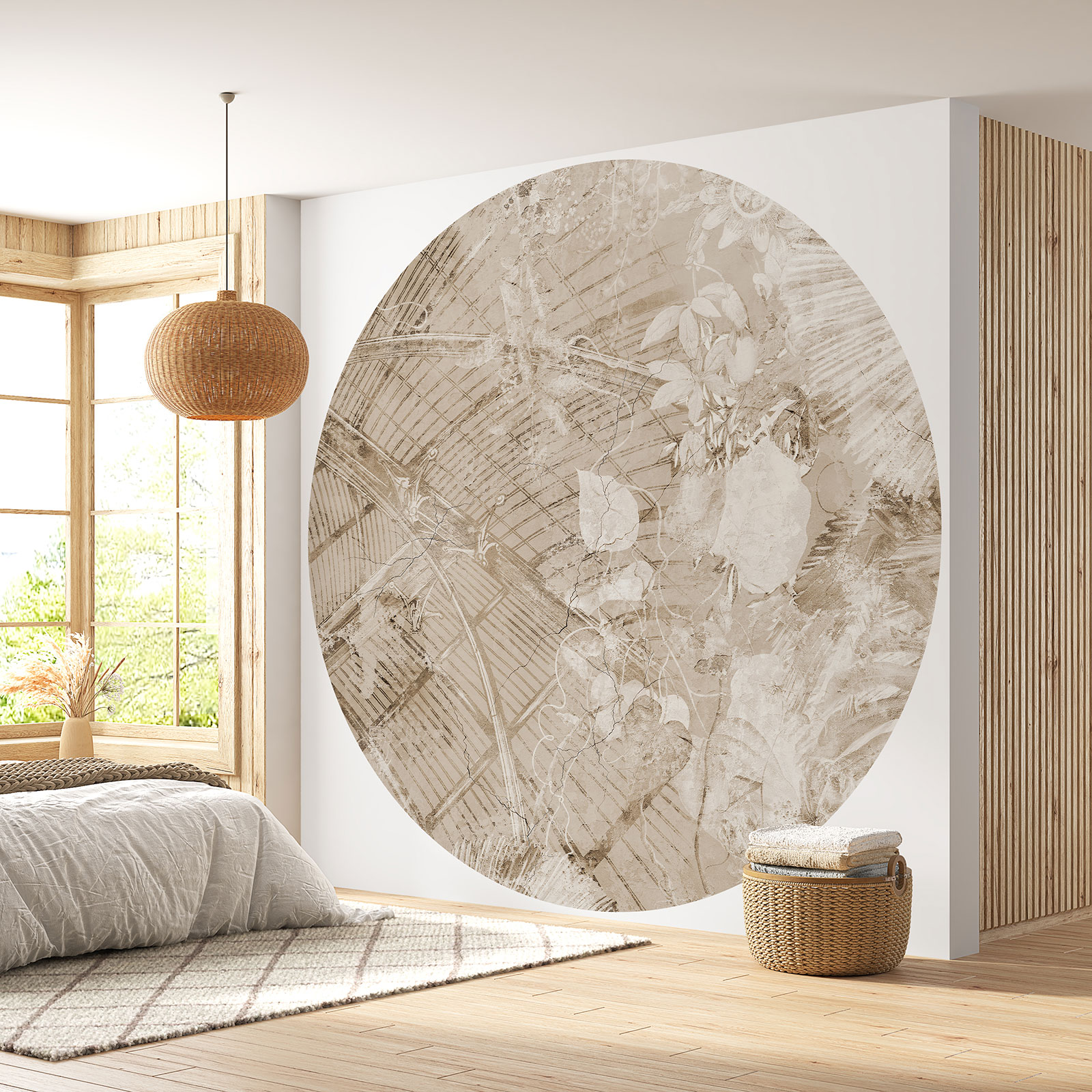 Papier peint rond / cercle - Motif floral