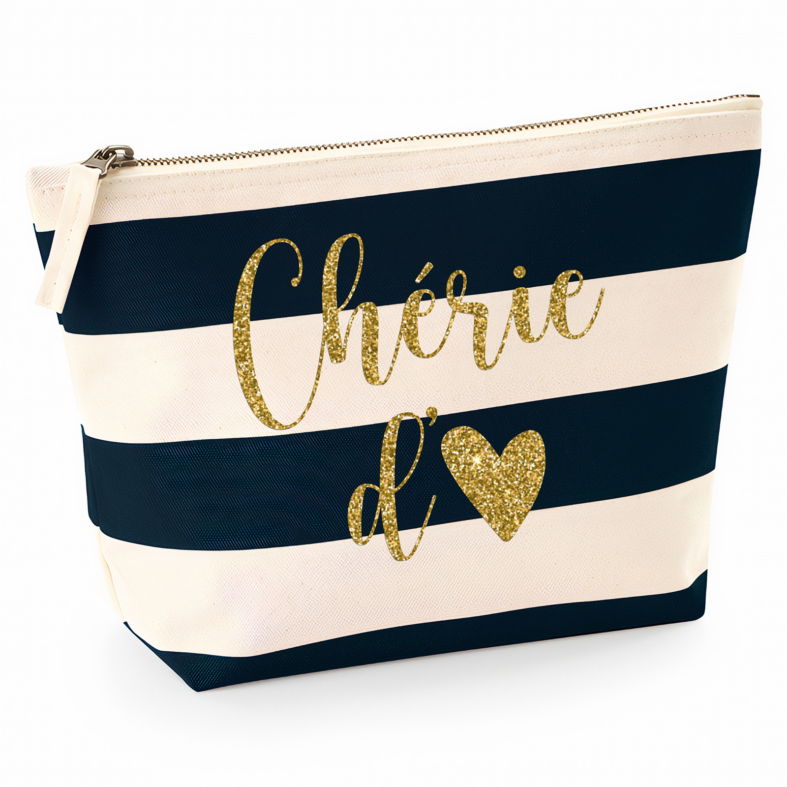 Pochette Nautical a rayures bleues foncées avec Écriture OR Pailletée - Chérie d'amour