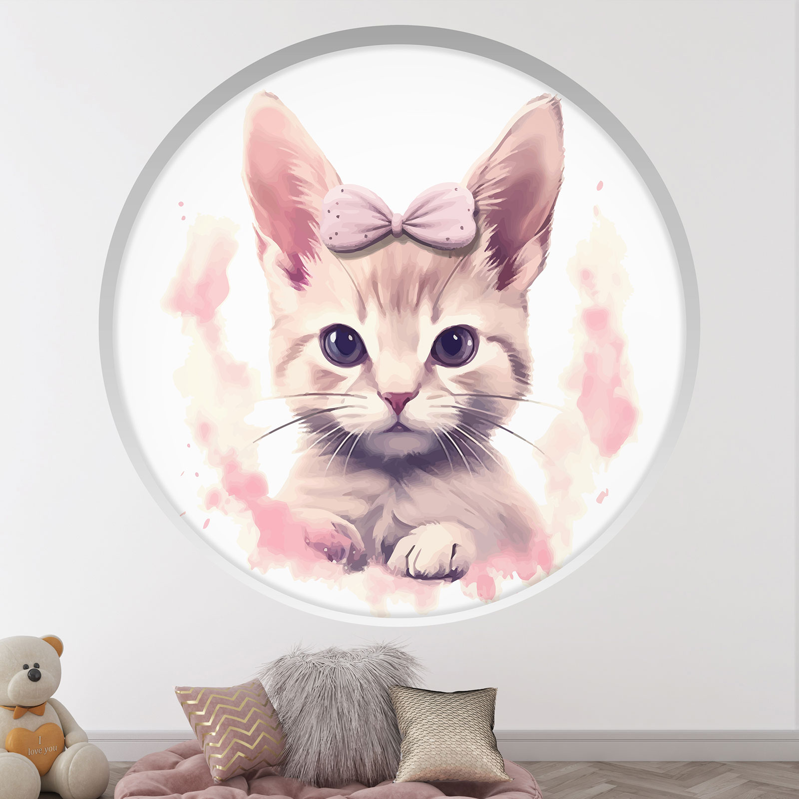 Stickers Trompe l'œil Arche ronde Enfants - Chat