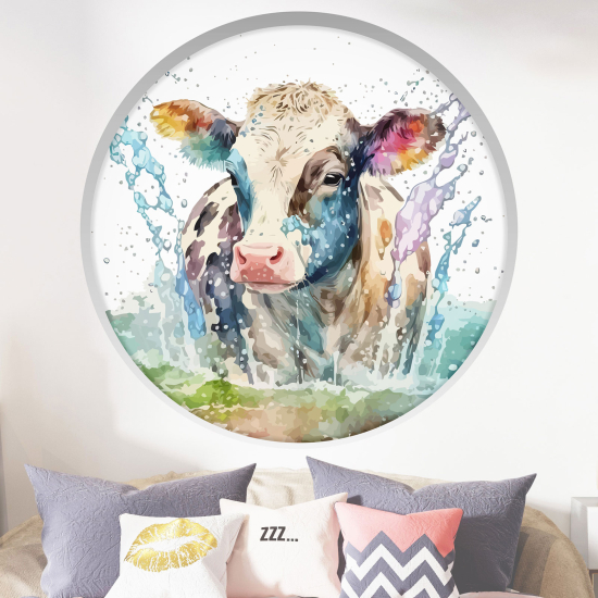 Stickers Trompe l'œil Arche ronde Enfants - Vache