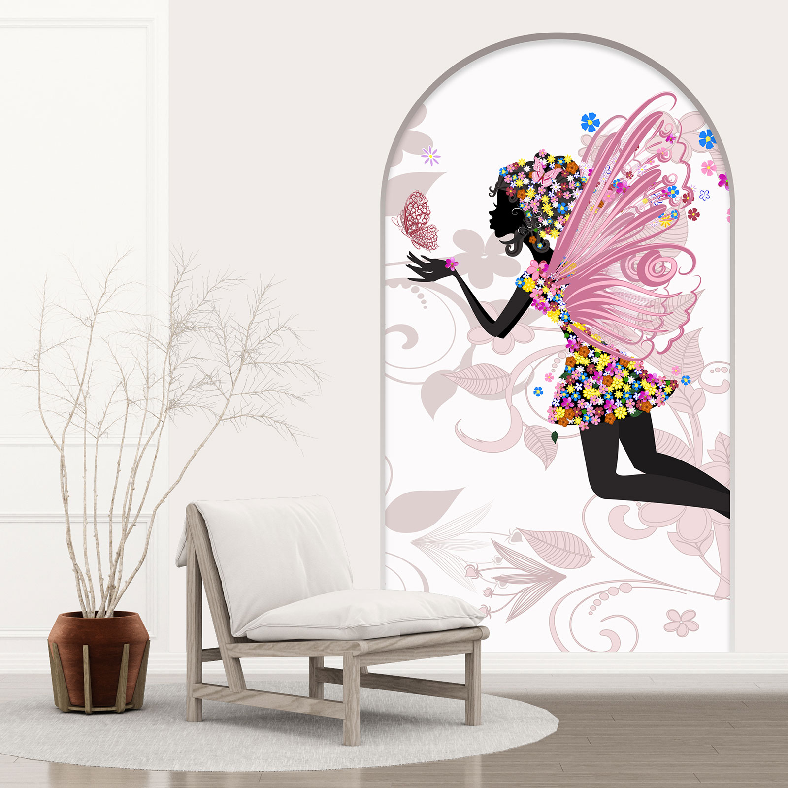Stickers Trompe l'œil Arche - Voute Enfants - Fée Fleurs papillons