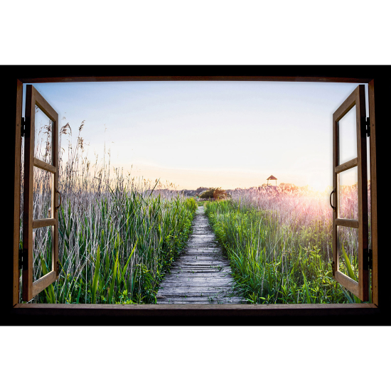 Stickers Trompe l'œil fenêtre en bois - Chemin