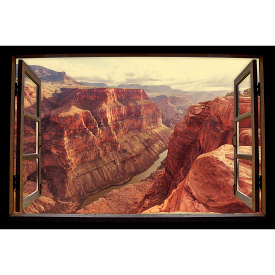 Stickers Trompe l'œil fenêtre en bois - Grand canyon