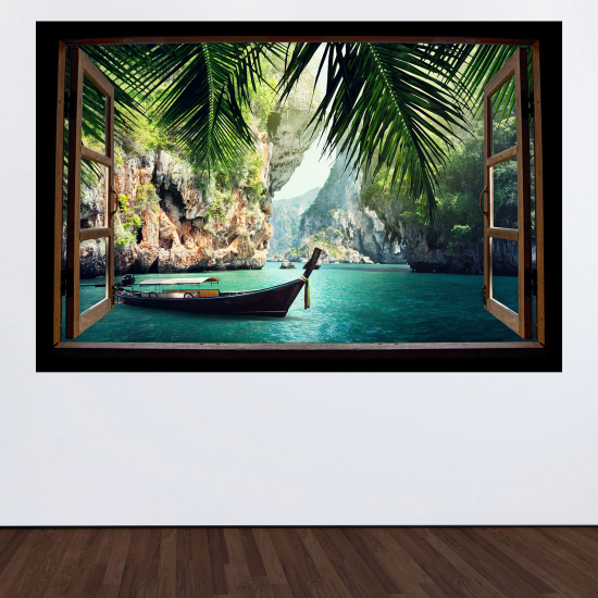 www.lumalea.fr > Stickers > Stickers Trompe L'oeil > Stickers Fenêtres en Bois > Stickers Trompe l'œil fenêtre en bois - Paradisiaque