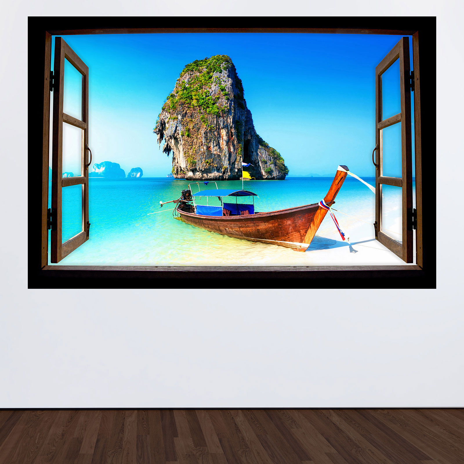 www.lumalea.fr > Stickers > Stickers Trompe L'oeil > Stickers Fenêtres en Bois > Stickers Trompe l'œil fenêtre en bois - Paradisiaque