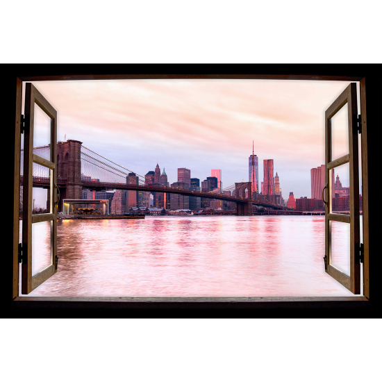 Stickers Trompe l'œil fenêtre en bois - Pont New york