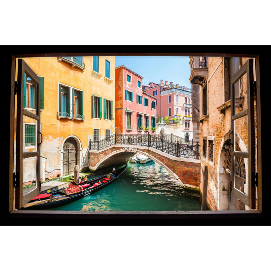 Stickers Trompe l'œil fenêtre en bois - Venise
