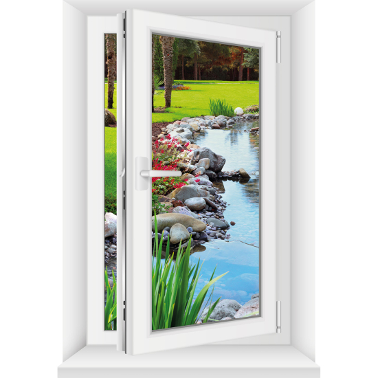 Stickers Trompe l'œil fenêtre - Jardin Rivière