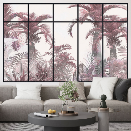 www.lumalea.fr > Stickers > Stickers Trompe L'oeil > Stickers Fausses Verrières > Stickers Trompe l'œil fenêtre verrière - Forêt Tropicale