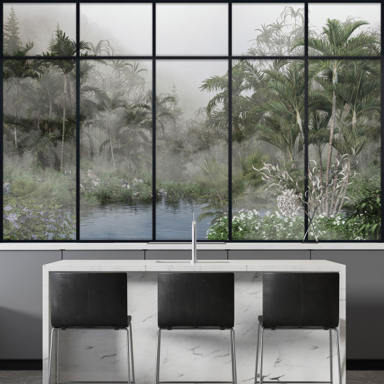Stickers Trompe l'œil fenêtre verrière - Forêt Tropicale