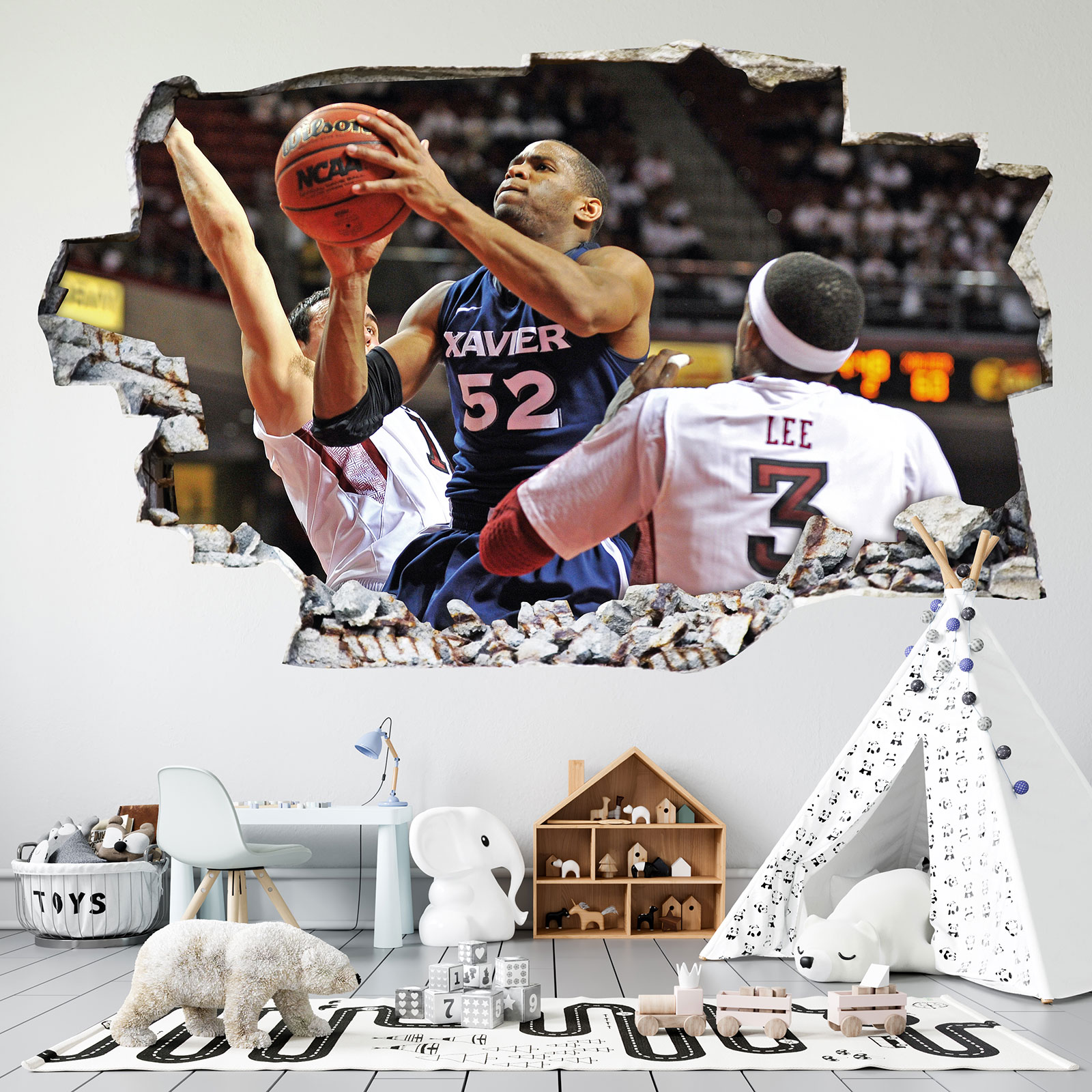 Stickers Trompe l'oeil trou dans le mur - Basketball
