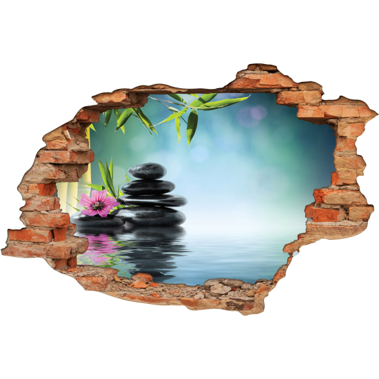 Stickers Trompe l'oeil trou dans le mur - Fleur bambou