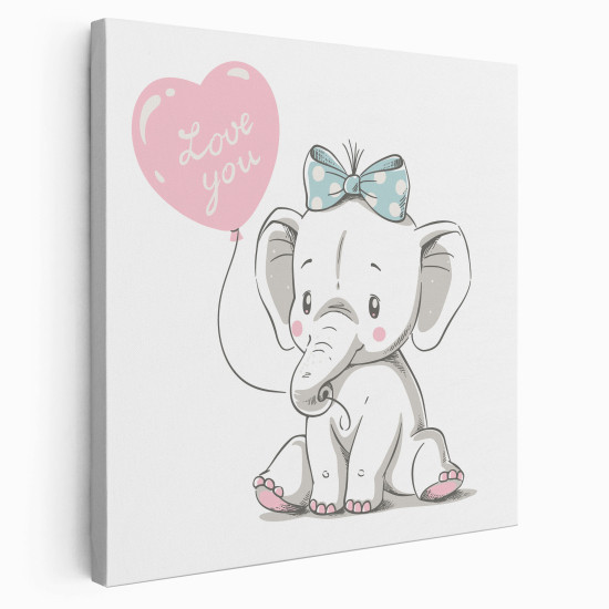 Tableau toile Enfants Carré - Éléphant Cœur Love You