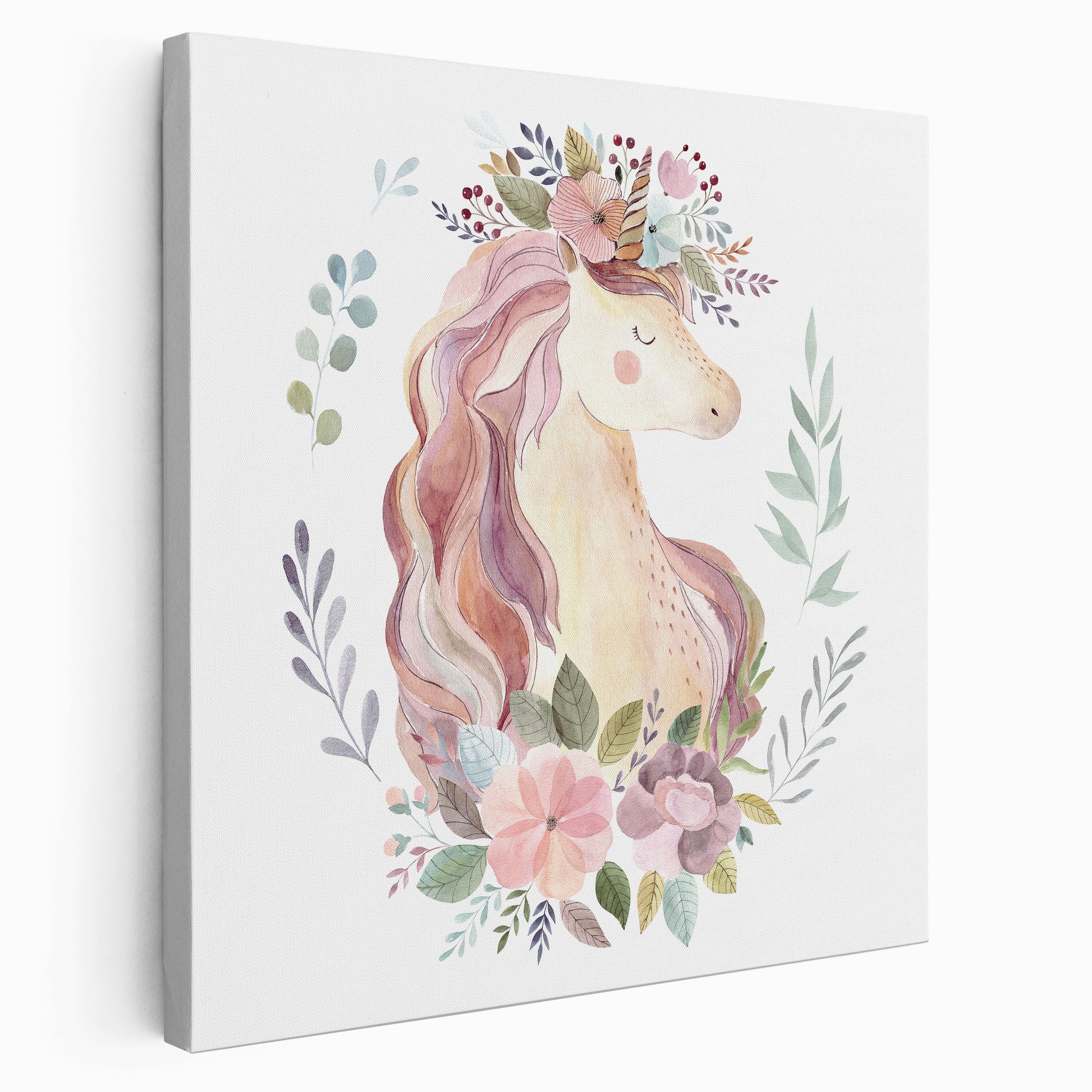 Tableau toile Enfants Carré - Licorne Fleurs