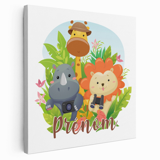 Tableau toile enfants personnalisée avec prénom - Animaux de la jungle