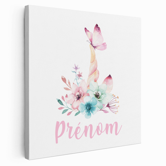 Tableau toile enfants personnalisée avec prénom - Licorne Papillon