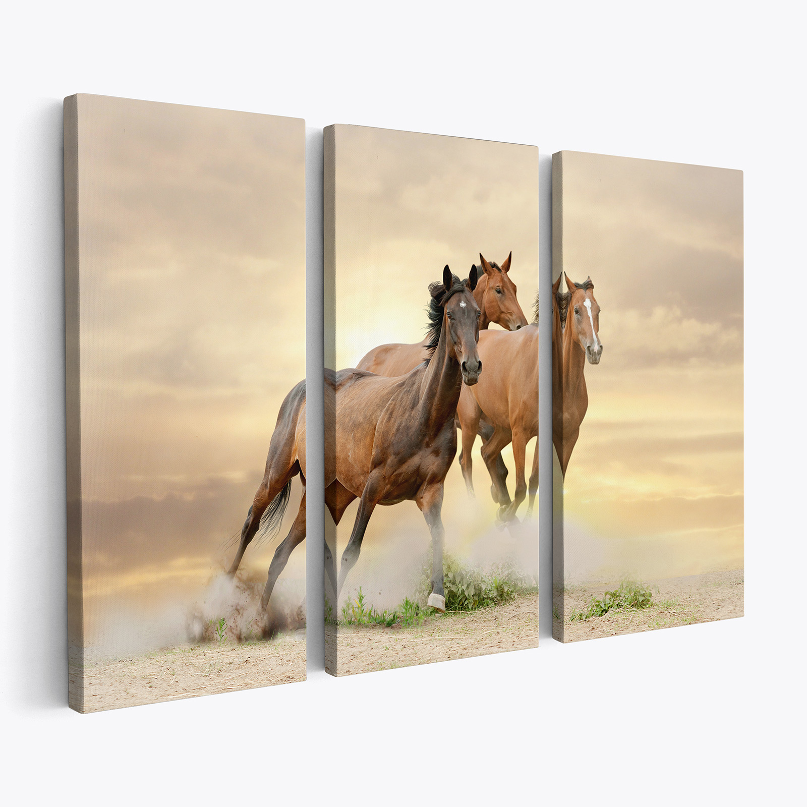 Tableau triptyque sur toile - Chevaux