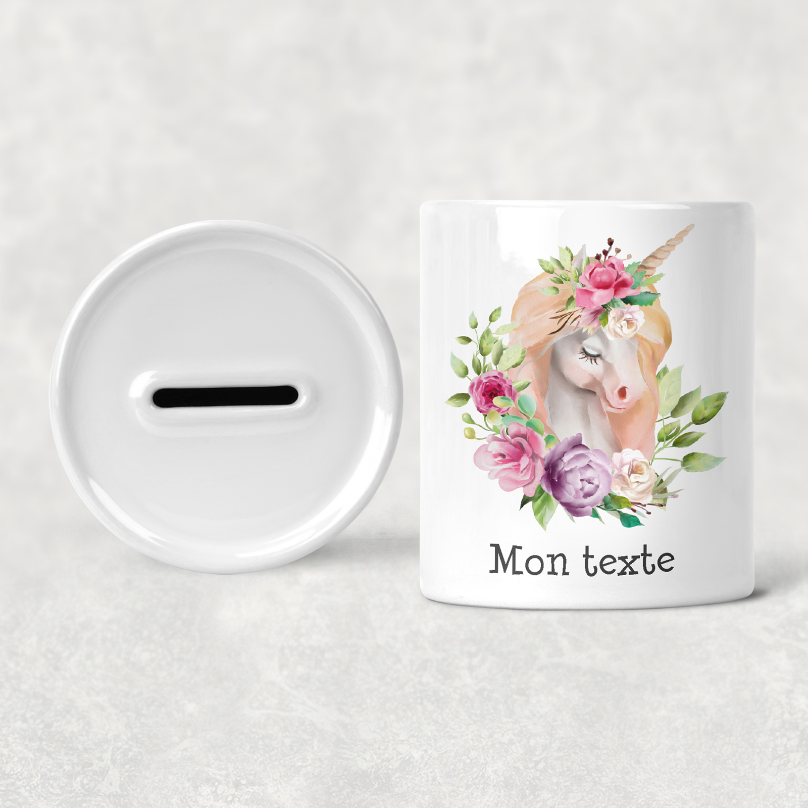www.lumalea.fr > Enfants > Tirelires > Prénom Personnalisable > Tirelire Enfants - Licorne Fleurs