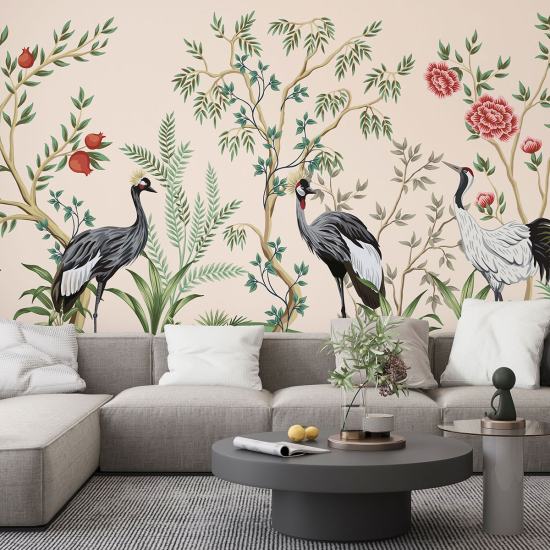 Papier peint panoramique - Fleurs Oiseaux