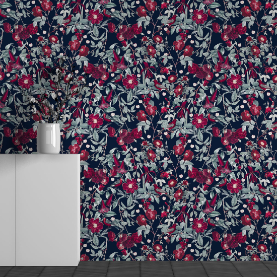 Papier peint panoramique - Motif Fleurs Oiseaux