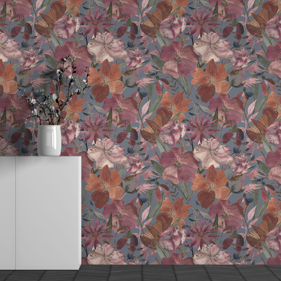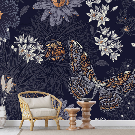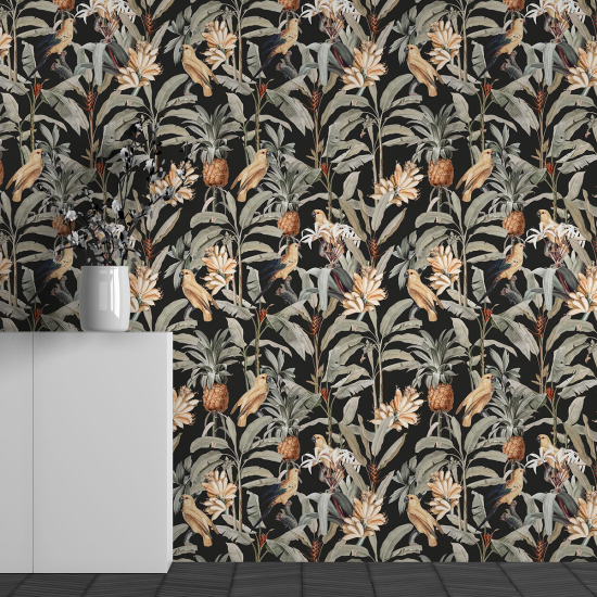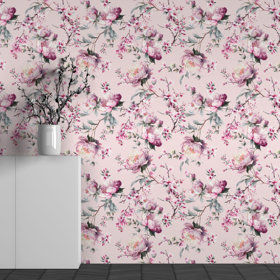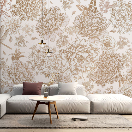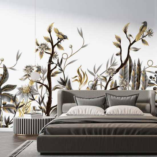 Papier peint panoramique - Motif Fleurs Oiseaux