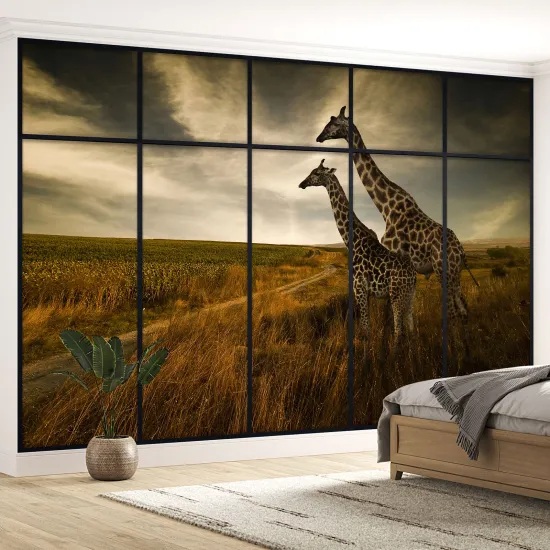 Papier peint panoramique Trompe l'œil Verrière - Girafes