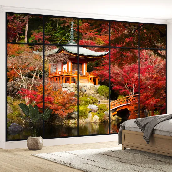 Papier peint panoramique Trompe l'œil Verrière - Temple japonais